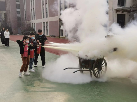 全校師生全部安全疏散完畢后,學校還邀請了河南省消防協(xié)會教官對全體師生從如何報火警、火災的預防、火場自救及逃生方法等消防安全基本常識進行了講解。教官還現(xiàn)場演示了滅火器的操作程序,并邀請學生參與其中,讓全體師生掌握正確使用滅火器的方法。