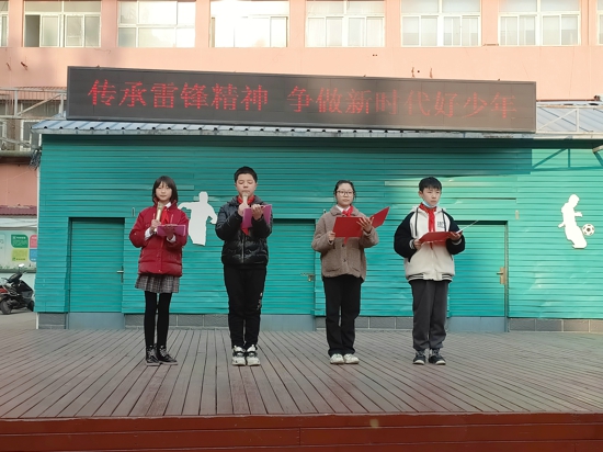 儀式上,大隊輔導員李翠老師帶領全體學生學習了紀念“向雷鋒同志學習”的題詞。并呼吁學生:雷鋒是時代的楷模,它是五千年優(yōu)秀中華文化和紅色革命文化的結合,作為新時代少年,要堅定不移地傳承雷鋒精神,讓雷鋒精神在新時代綻放更加璀璨的光芒。