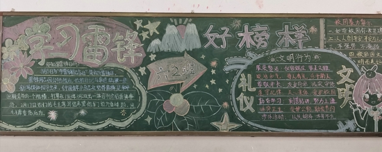 其次,學校紅領巾廣播站每天講述雷鋒故事、連續(xù)播放雷鋒歌曲宣揚雷鋒精神,充分營造學雷鋒的良好氛圍。各中隊分別開展了“高舉隊旗跟黨走雷鋒精神代代傳”主題隊會活動,隊員們通過制作主題鮮明、內(nèi)容豐富的黑板報來了解雷鋒生平,追憶雷鋒事跡,并高唱歌曲《學習雷鋒好榜樣》,讓雷鋒精神深入到須水六小每一位師生的心中。