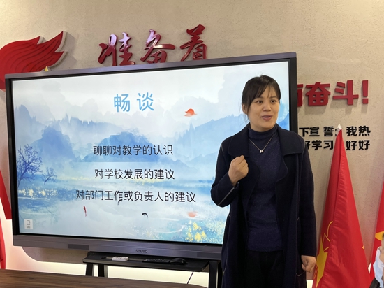 中新河南網(wǎng)3月6日電(吳勇強(qiáng))為進(jìn)一步聚焦學(xué)校發(fā)展熱點(diǎn),傾聽老師們的心聲,搭建學(xué)校管理團(tuán)隊(duì)與教師間雙向溝通的交流平臺(tái),2023年3月2日上午,金水區(qū)工人第一新村小學(xué)召開45歲以上教師會(huì)。學(xué)校班子成員和45歲以上的教職工圍坐在一起,就“做幸福的寶藏教師”展開交流。會(huì)議由王利主任主持。