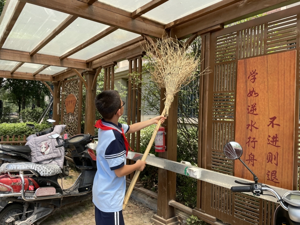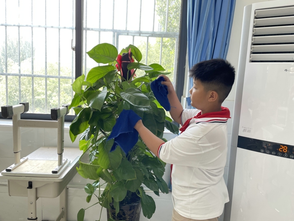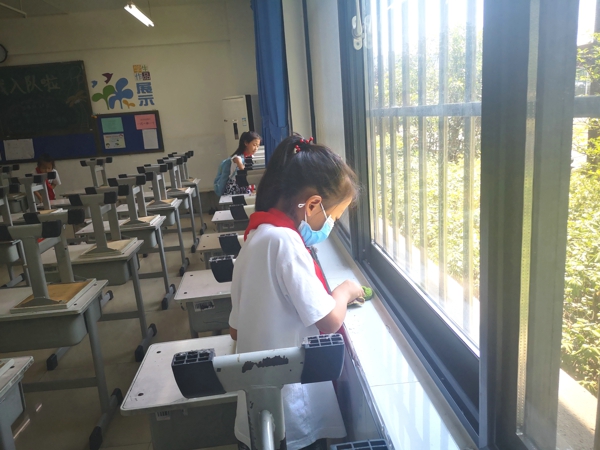 在中隊輔導(dǎo)員的帶領(lǐng)下,少先隊員紛紛拿著掃帚、拖把、抹布、水桶等勞動工具,到劃定的衛(wèi)生區(qū)域里打掃衛(wèi)生。大家本著“團結(jié)協(xié)作、愛校如家”的精神,相互配合,不怕臟、不怕累——打掃教室、擦洗窗戶、整理桌凳、清除死角……雖然少先隊員汗流浹背,但樂在其中,表現(xiàn)了良好的精神風(fēng)貌。大掃除活動現(xiàn)場氣氛十分活躍,大家忙碌的身影,成為校園最美的流動風(fēng)景。經(jīng)過大家的共同努力,校容校貌煥然一新,到處都透出清爽與潔凈。