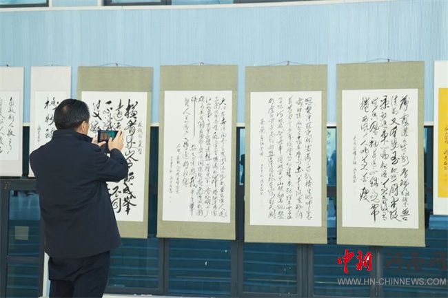 河南工業(yè)大學(xué)原黨委書記戚世鈞,河南廣播電視大學(xué)原校長苗相甫,洛陽師范學(xué)院原黨委書記、省公共文化研究中心主任時(shí)明德,原中州大學(xué)黨委書記、中國高等職業(yè)技術(shù)教育研究會(huì)副會(huì)長習(xí)諫,鄭州師范學(xué)院原副校長、河南省教育學(xué)研究會(huì)理事長王北生,河南人民出版社副總編輯蔡瑛、中共河南省委宣傳部原副巡視員李憲林,大參林醫(yī)藥集團(tuán)股份有限公司執(zhí)行董事、總經(jīng)理戚培毓,河南省華夏文化藝術(shù)院院長海萌輝、副院長周首林、秘書長孟慶國,中國農(nóng)業(yè)發(fā)展銀行河南省分行原工會(huì)主任張獻(xiàn)民、濮陽市人大常委會(huì)原法工委主任高金寶等領(lǐng)導(dǎo)以及300多名師生參加開幕式并觀看展覽。