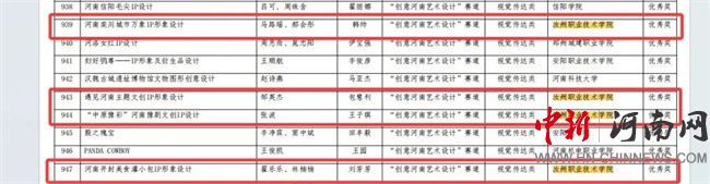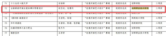 學(xué)校對此次比賽高度重視,參賽師生積極投入,所提交作品涉及文化與形象IP設(shè)計等多個方向,在此次比賽中學(xué)校師生獲得二等獎1項、優(yōu)秀獎4項。其中,趙玉龍、包慧利創(chuàng)作《古韻新姿河南汝瓷品牌IP形象設(shè)計》獲得教師組二等獎;由教師韓帥指導(dǎo)馬路瑤、郝會彤創(chuàng)作的《河南欒川城市萬象IP形象設(shè)計》,教師包慧利指導(dǎo)鄒英杰創(chuàng)作的《遇見河南主題文創(chuàng)IP形象設(shè)計》,教師王子琪指導(dǎo)張波創(chuàng)作的《“中原豫彩”河南豫劇文創(chuàng)IP設(shè)計》,教師劉芳芳指導(dǎo)翟樂樂、林楠楠創(chuàng)作的《河南開封美食灌湯包IP形象設(shè)計》分獲學(xué)生組優(yōu)秀獎。