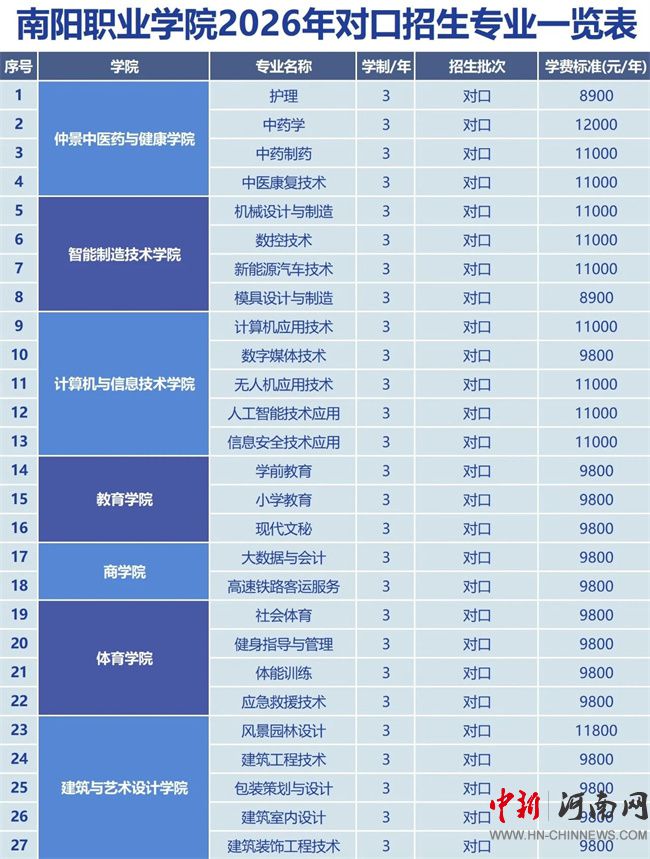南陽職業(yè)學(xué)院2026年對口招生簡章