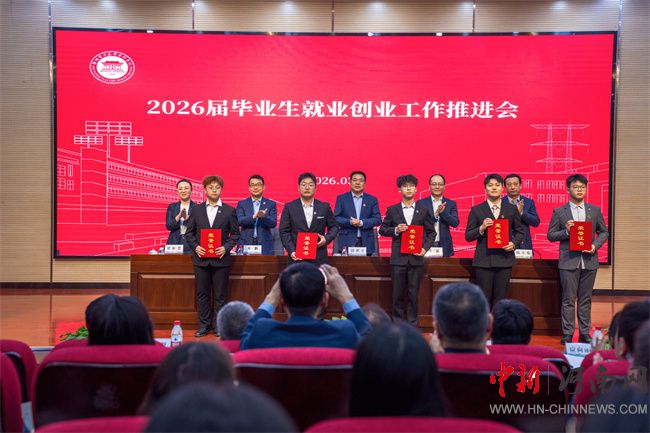 會上,鄭州電專對2025年度就業(yè)創(chuàng)業(yè)類獲獎項目、集體和個人予以表彰。能源與動力工程學院、電氣工程學院分別圍繞黨建引領就業(yè)、多方協(xié)同育人作交流發(fā)言;2026屆畢業(yè)生代表趙勇霖分享了基層一線就業(yè)實踐經驗。