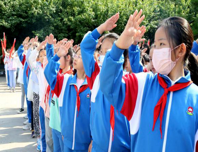 孩子們與哥哥姐姐一起參與莊嚴(yán)肅穆的升旗儀式,原來,小學(xué)生升旗時列隊又快又齊,他們可以自己演奏國歌,升旗時需要這樣敬禮......