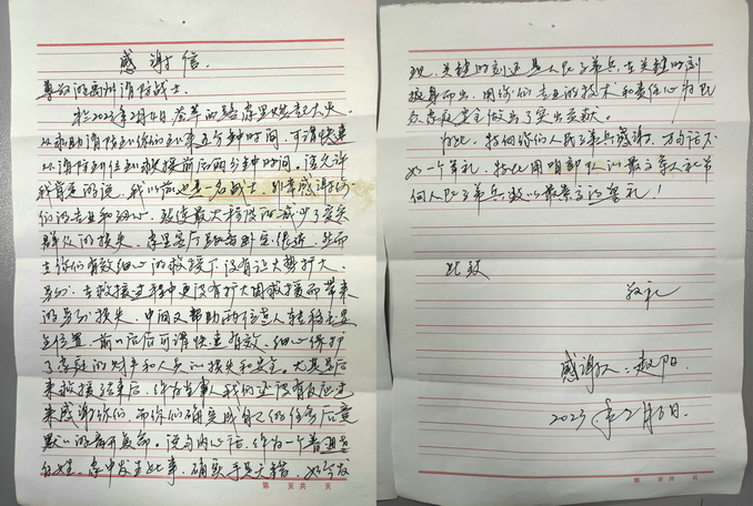 一封書信看似簡單、一句感謝看似平淡,表達了老百姓對消防救援隊伍的感激之情,不僅是對救援工作的支持與褒獎,更是對消防救援隊伍的一種鼓勁和肯定。