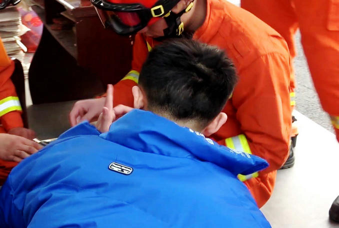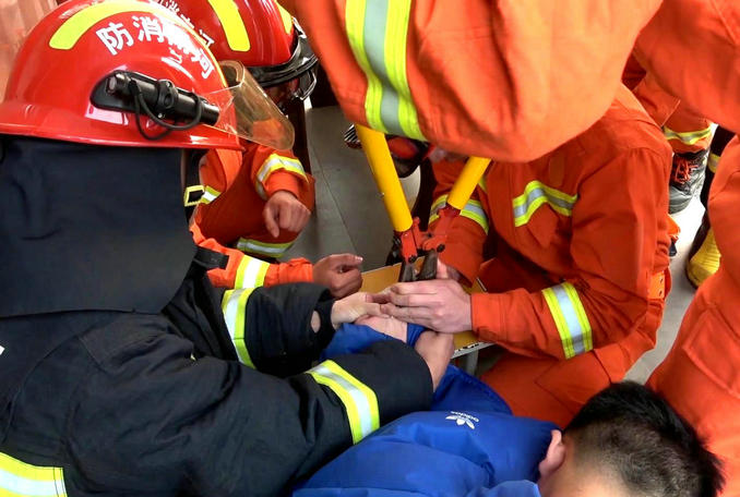 河南襄城:開學(xué)首日男生貪玩不慎卡手 消防隊(duì)員緊急趕赴破拆救援