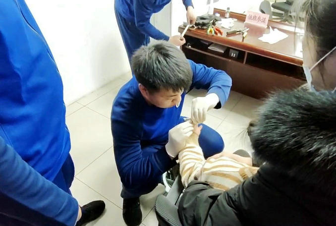 河南許昌:女子被削皮刀卡手上門求助 消防隊員成功實施破拆救援