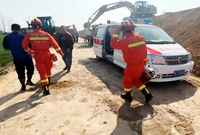 河南許昌:一輛工程車側(cè)翻駕駛員被困 消防隊員火速趕赴破拆救援