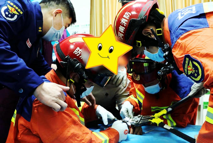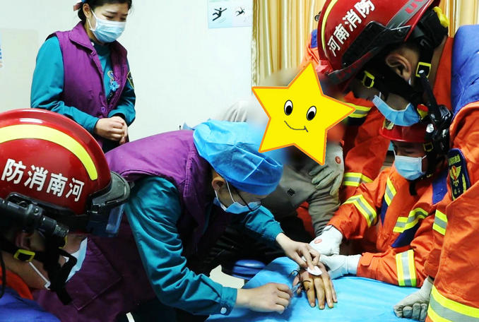 河南鄢陵:滾鉤扎傷男子手指急需治療 消防醫(yī)護(hù)聯(lián)手成功處置救援