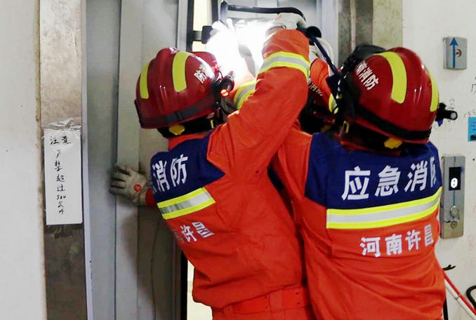河南鄢陵:小區(qū)電梯“罷工”母女被困 消防隊員緊急趕赴破拆救援