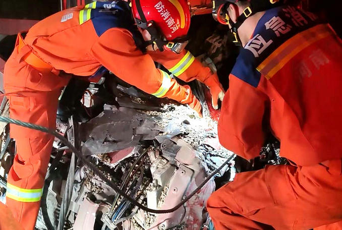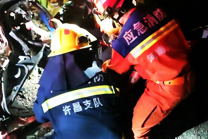 河南禹州:兩輛貨車發(fā)生追尾司機(jī)被困 消防隊(duì)員立即趕赴破拆救援