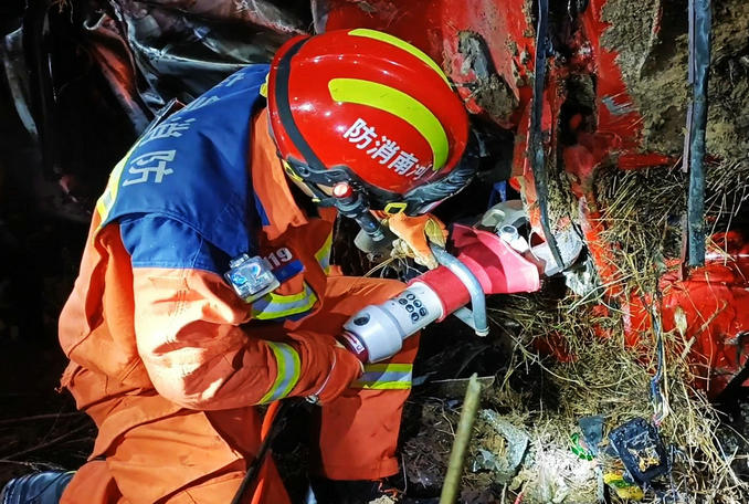 消防救援人員利用撬杠、液壓剪斷鉗、液壓擴張器等器材,對駕駛室車門進行破拆擴張。車門被成功打開后,救援人員使用牽引裝置對變形的駕駛室進行牽引,進一步增大施救空間。