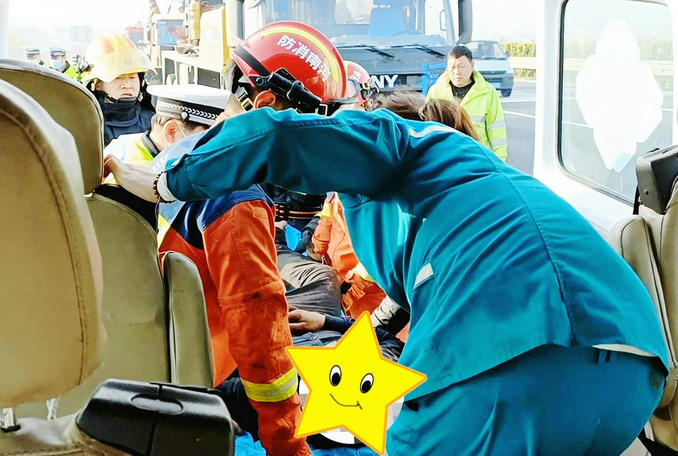 隨后,由一名救援人員進入駕駛室的內(nèi)部,拖住被困司機身體,與其他救援人員合力將被困司機安全抬出,并將其交由現(xiàn)場醫(yī)護人員送往醫(yī)院救援。