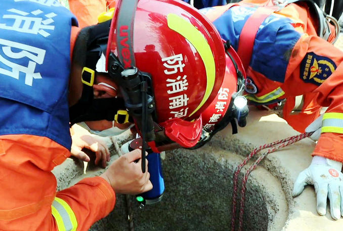 河南鄢陵:老人務(wù)農(nóng)不慎墜入灌溉機(jī)井 消防隊(duì)員實(shí)施索降成功救援