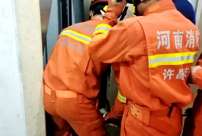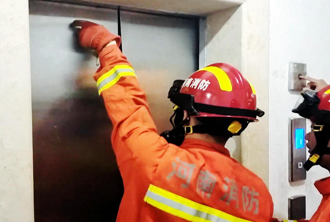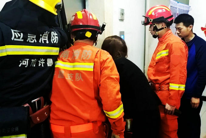 河南襄城:小區(qū)電梯發(fā)生故障三人被困 消防隊(duì)員火速趕赴破拆救援