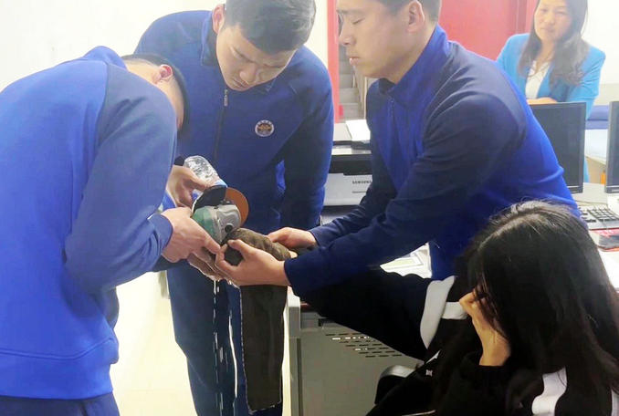 當(dāng)晚10時(shí)左右,該女生晚自習(xí)下課后,把手指插進(jìn)柜子的鎖扣內(nèi),不慎手指被卡無(wú)法取出。由于手指被卡時(shí)間較長(zhǎng),右手中指已經(jīng)開始腫脹,如果不及時(shí)取下鎖扣,可能會(huì)對(duì)手指造成傷害。