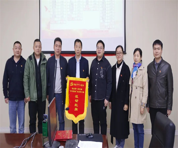 醫(yī)技第一黨支部書記邱剛為獲得3月份“學(xué)習(xí)強(qiáng)國”先進(jìn)黨小組頒發(fā)流動(dòng)紅旗。