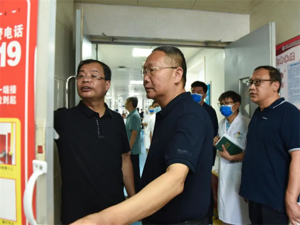 中新河南網(wǎng)6月21日電:端午假期將至,為確保醫(yī)院各項工作安全平穩(wěn)有序運行,讓市民擁有一個和諧、安全、穩(wěn)定的就醫(yī)環(huán)境,6月21日上午,開封市衛(wèi)健委黨組成員、開封市中心醫(yī)院院長李華強帶領(lǐng)院長辦公室、醫(yī)務(wù)部、護(hù)理部、保衛(wèi)科、總務(wù)科、宣傳科、藥劑科等相關(guān)科室負(fù)責(zé)人,開展節(jié)前行政大查房,對院內(nèi)重點區(qū)域、重點崗位進(jìn)行巡查與督導(dǎo)。