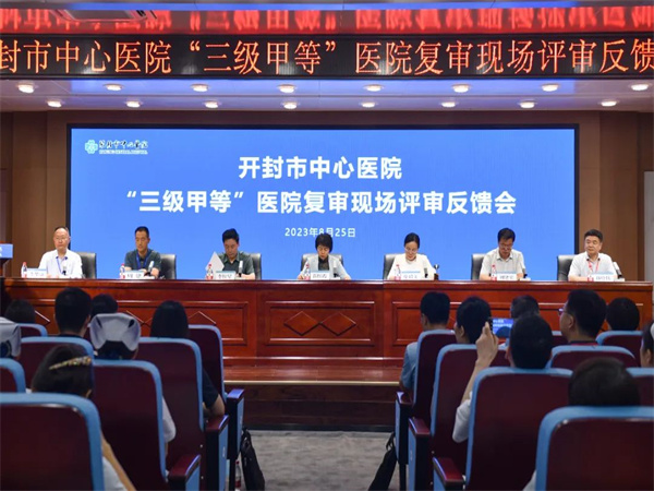 根據(jù)國家三級甲等醫(yī)院評審規(guī)則,河南省衛(wèi)健委組織評審組對開封市中心醫(yī)院進行了為期四天的三級甲等醫(yī)院復(fù)審現(xiàn)場評審。根據(jù)國家《三級醫(yī)院評審標準》細則條款、《河南省三級醫(yī)院評審標準實施細則(2022年版)》,評審組16名專家先后完成了所有指標和條款的評審評價任務(wù)。在復(fù)審現(xiàn)場反饋會上,河南省衛(wèi)健委評審組帶隊隊長郝曉偉鄭重宣布,開封市中心醫(yī)院順利通過三級甲等醫(yī)院復(fù)審現(xiàn)場評審。