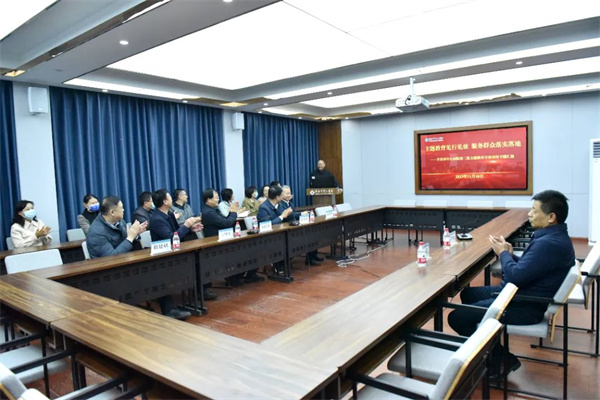 在該院教學(xué)樓三樓會議室,李華強書記代表院黨委向參與調(diào)研的市衛(wèi)健委領(lǐng)導(dǎo)一行表示歡迎和感謝,并就主題教育開展情況、新院區(qū)建設(shè)情況、區(qū)域醫(yī)療中心建設(shè)及學(xué)科發(fā)展情況、落實“便民就醫(yī)少跑腿”七大舉措情況等工作進行簡要匯報。