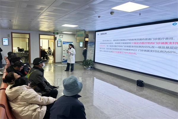 隨后市中心醫(yī)院醫(yī)?乒ぷ魅藛T通過PPT及視頻詳細講解了參保繳費標準、繳費方式、繳費時限、待遇享受期限,繳費后享受的門診、住院醫(yī)療保障待遇等內(nèi)容。