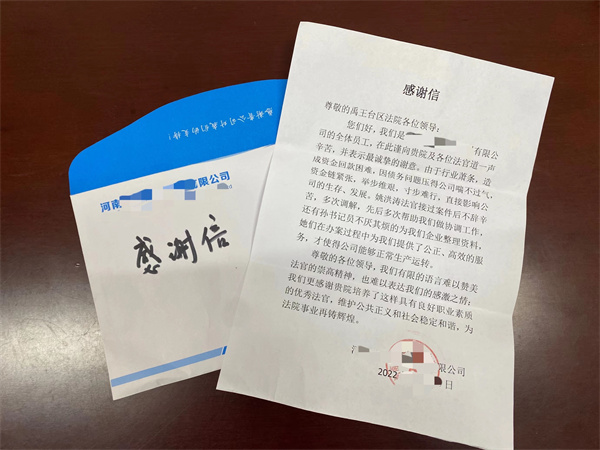近日,開封市禹王臺(tái)法院收到一封來(lái)自企業(yè)的感謝信,對(duì)禹王臺(tái)法院姚洪濤營(yíng)商審判團(tuán)隊(duì)的務(wù)實(shí)精神和對(duì)企業(yè)的無(wú)限關(guān)懷表示衷心感謝。