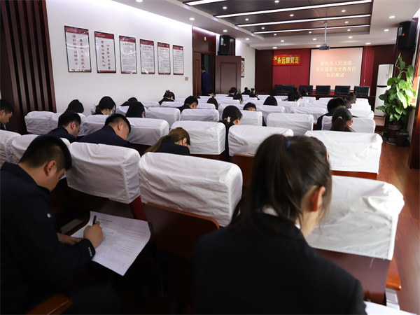 以考促學(xué),進一步增強了干警學(xué)習(xí)國家安全法律法規(guī)知識的自覺性,深刻認識國家安全教育活動的重要性,堅定了廣大干警更好的立足審判職能,為堅決維護國家安全作出積極貢獻,共同筑牢國家安全防線的決心。