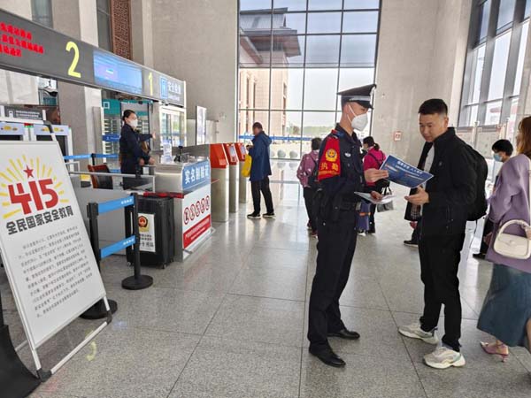 宣傳民警深入候車大廳,向候車旅客發(fā)放宣傳資料并進(jìn)行面對面講解,圍繞當(dāng)代國家安全組成領(lǐng)域、總體國家安全觀五大要素和五對關(guān)系、國家安全法律制度體系、公民有關(guān)維護(hù)國家安全的義務(wù)和權(quán)利、如何辨別危害國家安全的行為及舉報方式等內(nèi)容,上了一堂深入淺出的國家安全教育課,號召大家自覺抵制和防范危害國家安全犯罪行為。本次宣傳活動使廣大旅客充分了解國家安全的重要意義,切實(shí)增強(qiáng)其國家安全法治意識,進(jìn)一步打牢自覺維護(hù)國家安全的群眾基礎(chǔ),警民同心共筑國家安全的鋼鐵長城。(王安瀾)