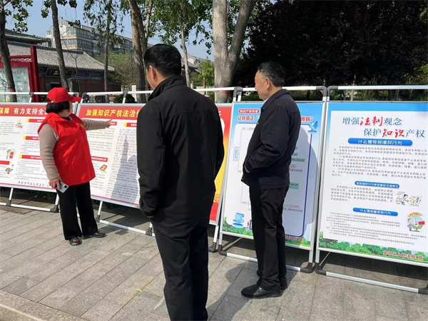 活動(dòng)開展采用懸掛宣傳橫幅、設(shè)置展示版面和發(fā)放宣傳單的方式進(jìn)行。工作人員現(xiàn)場接受咨詢、指引群眾閱覽、推送龍亭法院公眾號(hào)、走進(jìn)附近商戶發(fā)放宣傳單,讓群眾了解“世界知識(shí)產(chǎn)權(quán)日”的由來,何為知識(shí)產(chǎn)權(quán),知識(shí)產(chǎn)權(quán)的種類,如何維護(hù)知識(shí)產(chǎn)權(quán)等法律知識(shí)。通過此次宣傳,共發(fā)放各類宣傳材料150余份,現(xiàn)場解答群眾咨詢30余人次。從而讓更多的了解知識(shí)產(chǎn)權(quán)法律知識(shí)、了解知識(shí)產(chǎn)權(quán)立調(diào)裁審的審判程序,進(jìn)一步增強(qiáng)了群眾的知識(shí)產(chǎn)權(quán)保護(hù)意識(shí)。