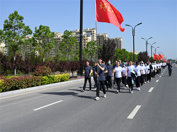 行動釋放風采,健康鍛造未來。4月29日,早晨天氣雖然微涼,但絲毫沒有影響干警愉悅的心情。領(lǐng)隊高舉旗幟,祥符法院干警斗志昂揚從開封市祥符區(qū)第三實驗小學出發(fā)。沿途春色正濃,大家暫時放下平日繁重工作的壓力,盡情呼吸著新鮮的空氣,欣賞著沿途的風景,邁著矯健的步伐,喊著嘹亮的口號,信步沐浴春光,臉上洋溢著笑容,一路意氣風發(fā)走向目的地。