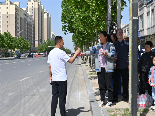 活動剛結(jié)束,法院干警李聰聰家屬和孩子早早等候在路邊,為辛苦一路走來的干警遞上礦泉水。喝上一口,尤其甘甜溫暖,為健步走構(gòu)筑一幅靚麗的風景線。