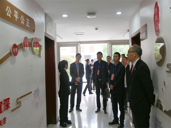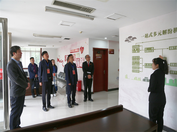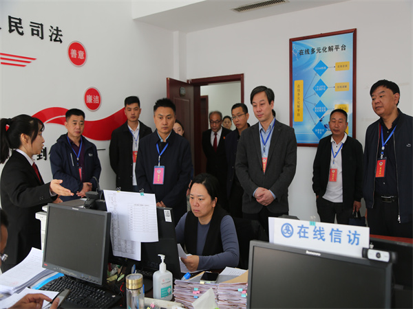 王風來一行實地查看了矛盾糾紛多元化解中心、執(zhí)行事務接待中心、宋付振調解室、在線多元化解平臺工作室等辦公區(qū)域。