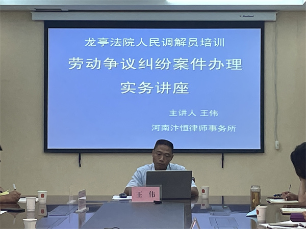 中新河南網(wǎng)6月20日電:6月19日上午,開封市龍亭區(qū)法院舉辦了勞動(dòng)爭(zhēng)議糾紛案件法律知識(shí)培訓(xùn)講座。主講人為河南汴恒律師事務(wù)所律師王偉,多元解紛團(tuán)隊(duì)、專職調(diào)解員、特邀調(diào)解員、工會(huì)調(diào)解員參會(huì)區(qū)紀(jì)委監(jiān)委派駐法院紀(jì)檢監(jiān)察組副組長(zhǎng)解玉輝列席,訴訟服務(wù)中心主任梁成勛主持。