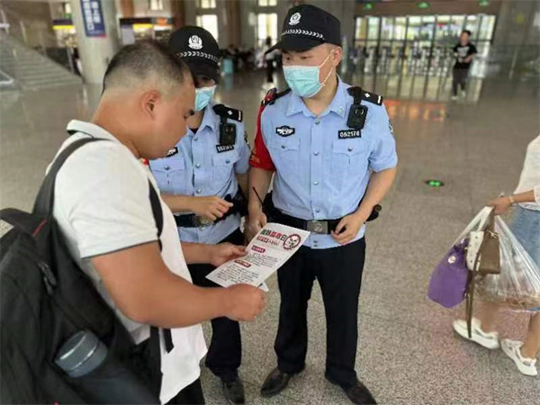 中新河南網(wǎng)6月26日電:在第36個(gè)“國(guó)際禁毒日”來(lái)臨之際,鄭州鐵路公安處開(kāi)封北站派出所全面貫徹落實(shí)習(xí)近平總書(shū)記關(guān)于禁毒工作重要指示精神,全面落實(shí)國(guó)家禁毒委員會(huì)《關(guān)于加強(qiáng)新時(shí)代全民禁毒宣傳教育工作的指導(dǎo)意見(jiàn)》,根據(jù)上級(jí)黨委統(tǒng)一部署,圍繞“健康人生,綠色無(wú)毒”主題,積極組織民警深入站區(qū)采取多種形式開(kāi)展禁毒宣傳工作,營(yíng)造全方位、多角度、廣覆蓋的濃厚宣傳氛圍,進(jìn)一步提升群眾識(shí)毒、防毒、拒毒的意識(shí)和能力,持續(xù)鞏固擴(kuò)大全民禁毒成效。