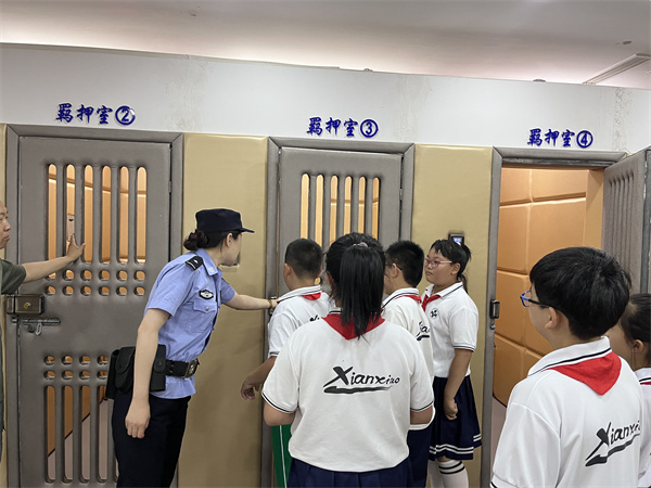 在羈押室,法警秦潔通過對羈押室布局、設(shè)備配置、功能作用的介紹,對大家進行了一次生動又深刻的警示教育。
