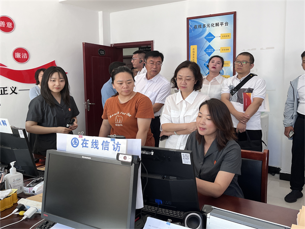 吳海燕一行先后來到矛盾糾紛多元化解中心、宋付振調(diào)解工作室、李大姐調(diào)解工作室、線上調(diào)解辦公室等場(chǎng)所,通過實(shí)地查看、聽取介紹、現(xiàn)場(chǎng)詢問等方式詳細(xì)了解了龍亭區(qū)法院矛盾糾紛多元化解工作的運(yùn)行模式及經(jīng)驗(yàn)做法,并與11名專職人民調(diào)解員進(jìn)行了深入交流。