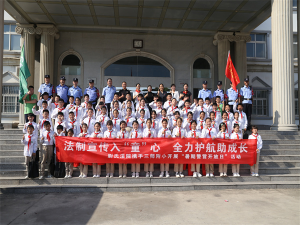 中新河南網8月29日電:為深入學習貫徹黨的二十大精神,全面強化法院警營文化建設,增進人民群眾對司法警察工作的理解,充分展現新時代司法警察隊伍良好形象。8月28日下午,尉氏縣人民法院司法警察大隊攜手開封市第三師范附屬小學開展了“暑期警營開放日”觀摩體驗活動。80余名師生“零距離”體驗警營日常,多維度感受法院文化。