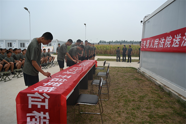 中新河南網(wǎng)9月12日電:為深入學(xué)習(xí)宣傳貫徹黨的二十大精神,強(qiáng)化新兵法治觀念,9月11日下午,蘭考縣法院組織法官走進(jìn)縣武裝部預(yù)定新兵訓(xùn)練基地,開展“送法助征兵”活動,為即將入伍的新兵們送上役前法治教育“第一課”。