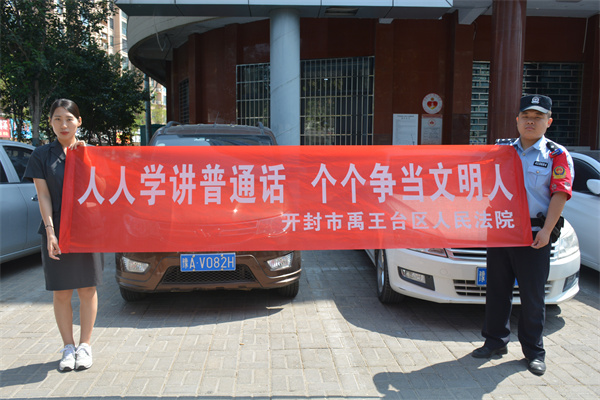 推普周期間,禹王臺(tái)法院積極營(yíng)造宣傳氛圍,在立案庭(訴訟服務(wù)中心)設(shè)置“請(qǐng)講普通話(huà)”提示牌,時(shí)刻提醒大家要加強(qiáng)文字規(guī)范和普通話(huà)日常應(yīng)用,暢通溝通交流,并倡導(dǎo)全院干警在開(kāi)庭、辦公、辦案過(guò)程中養(yǎng)成使用普通話(huà)的習(xí)慣。