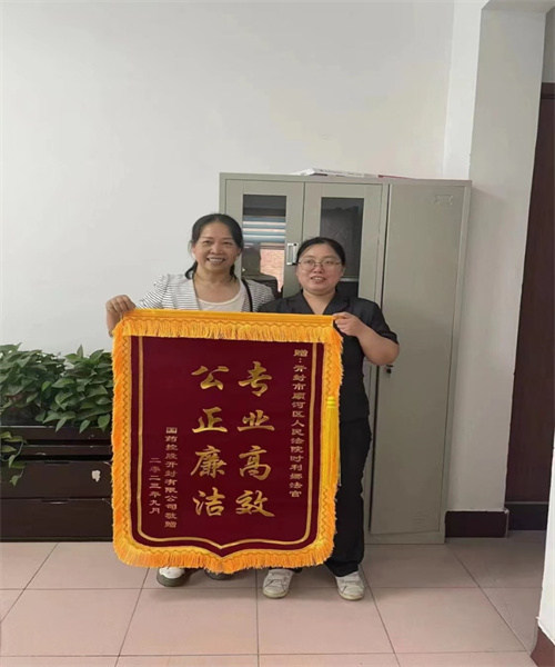 中新河南網(wǎng)9月26日電:為進一步踐行主題教育學(xué)習(xí)成果,深化為民服務(wù)宗旨9月25日下午,開封市順河回族區(qū)人民法院立案庭副庭長時利娜法官收到一面寫著“公正廉潔 專業(yè)高效”的錦旗,表達了當(dāng)事人對時法官高效辦案的感謝,對順河法院公正審判案件的認(rèn)可。