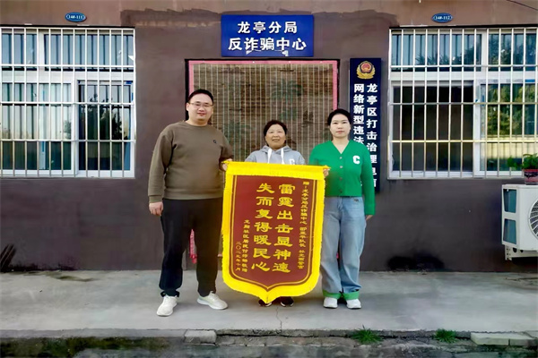 中新河南網(wǎng)11月9日電:“感謝你們幫我追回被騙的錢,以后我再也不相信什么‘股票導(dǎo)師’、‘內(nèi)部消息’了!”近日,付女士將一面錦旗送到開封市公安局龍亭分局反詐民警手中,感謝其為自己挽回20萬元經(jīng)濟(jì)損失。