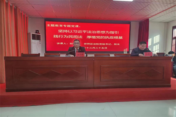 中新河南網(wǎng)12月25日電:為深入推進(jìn)學(xué)習(xí)貫徹習(xí)近平新時(shí)代中國特色社會(huì)主義思想主題教育在基層黨組織先學(xué)先行,12月25日,河南省開封市祥符區(qū)人民法院黨組書記、院長孫照君來到羅王鎮(zhèn),以“堅(jiān)持以習(xí)近平法治思想為指引,踐行為民司法,厚植黨的執(zhí)政根基”為主題,為村鎮(zhèn)兩級(jí)干部講授主題教育專題黨課,羅王鎮(zhèn)黨委書記宋建鑫主持會(huì)議。