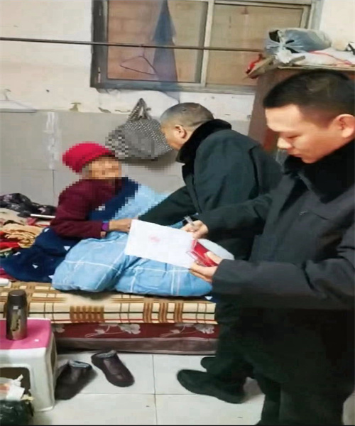 在法庭收到執(zhí)行錢款后,執(zhí)行人員對被執(zhí)行人的家屬進行了耐心的說服教育。這時,已經(jīng)是深夜,蔡莊法庭庭長曹磊帶領(lǐng)執(zhí)行人員踏著厚厚的積雪,來到了老太太的家中。他們細心地詢問了老太太的生活情況,得知老太太還沒有吃飯,身上只蓋著一張薄薄的被子,而外面則是冰天雪地,屋里沒有任何取暖設備。他們趕忙讓老太太的家人做飯,給老太太加了一床厚被子,把案件款交到了老太太的手中。