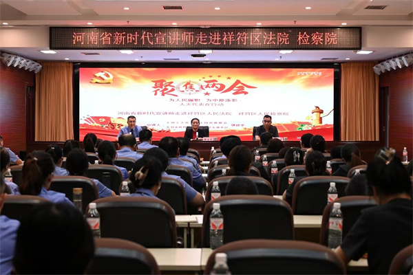中新河南網(wǎng)5月30日電:5月29日,河南省新時代宣講師走進祥符區(qū)人民法院、祥符區(qū)人民檢察院,祥符區(qū)法檢“兩院”百余名干警其齊聚一堂,共同聆聽全國人大代表、全國道德模范、開封市祥符區(qū)電影公司黨支部書記郭建華宣講2024年全國“兩會”精神,并上了一堂生動深刻的黨紀學習教育黨課。祥符區(qū)檢察院黨組書記、檢察長代朝輝主持,祥符區(qū)法院黨組書記、院長孫照君致辭,并號召大家以郭代表為榜樣,向郭代表學習。