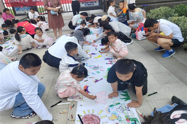 活動現(xiàn)場,50多名兒童一起走到了廣場上,彩色的畫筆在稚嫩的小手中飛舞著。有的畫出了自己居住的水碧天藍(lán)的家園,有的描繪著自己五彩斑斕的夢想,有的彩繪著自己與同伴快樂的游戲……一條線、一點(diǎn)墨,閃耀著孩子們創(chuàng)作的靈光、洋溢著孩子們快樂的童年生活。孩子們或跪、或趴、或蹲,孩子們揮筆勾線、潑墨涂色,轉(zhuǎn)眼間,長長的畫卷變成了一件色彩斑斕的藝術(shù)品。大家看著如此“巨作”,紛紛露出滿意的笑容。