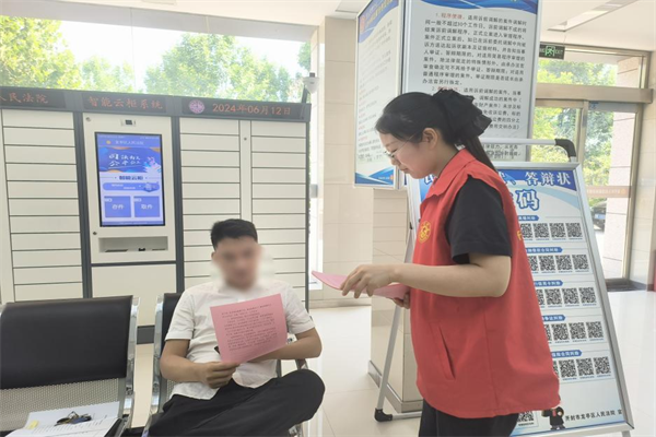志愿者們用通俗易懂的語言向法院周邊及來訪群眾解讀《最高人民法院關(guān)于審理涉彩禮糾紛案件適用法律若干問題的規(guī)定》中的主要條款,讓群眾更加了解人民法院在審理涉彩禮糾紛案件中的裁判標(biāo)準(zhǔn),倡導(dǎo)正確的婚姻觀。