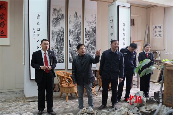 在東京藝術(shù)館,萬(wàn)朝陽(yáng)法官聽(tīng)取負(fù)責(zé)人史振東在字畫(huà)經(jīng)營(yíng)發(fā)展、人員管理等方面的情況,介紹了法院在優(yōu)化營(yíng)商環(huán)境、服務(wù)企業(yè)發(fā)展方面采取的措施以及取得的成果,并結(jié)合實(shí)際案例,以案釋法,普及《知識(shí)產(chǎn)權(quán)法》《著作權(quán)法》等相關(guān)法律法規(guī)。