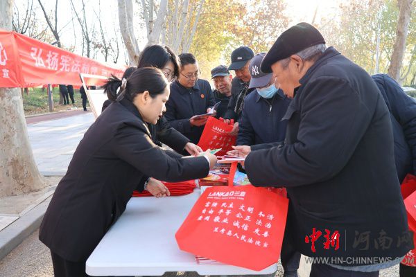 12月4日上午,蘭考縣法院組織干警在人民廣場設(shè)立普法宣傳點,開展集中憲法宣傳活動。